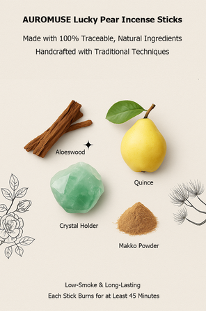 Lucky Pear blends the fragrant brightness of quince with the grounding richness of aloeswood, creating a light, uplifting aroma. It offers a moment of soft clarity—delicate yet full-bodied, like a quiet breeze through an orchard after rain.