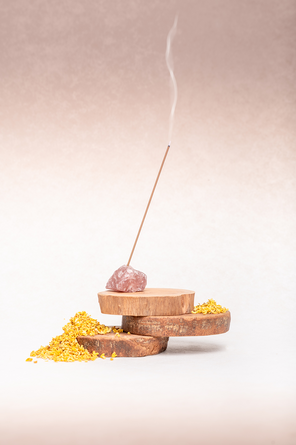 Each box includes a complimentary strawberry quartz incense holder, chosen to support emotional healing, heart connection, and inner softness. Simply place, light, and breathe into your glow.