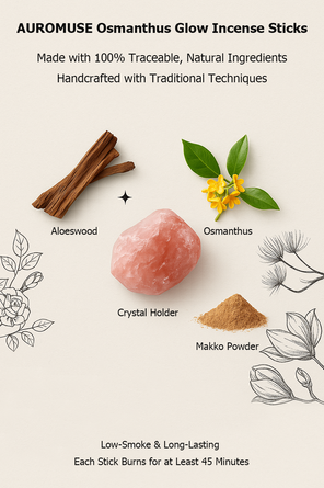 Ingredients:Aloeswood, Osmanthus, Indonesian Makko Powder Incense Sticks 100% Made with aloeswood in China Osmanthus Glow captures the radiant sweetness of golden osmanthus blossoms layered over the grounding calm of aloeswood. It’s a scent that feels...